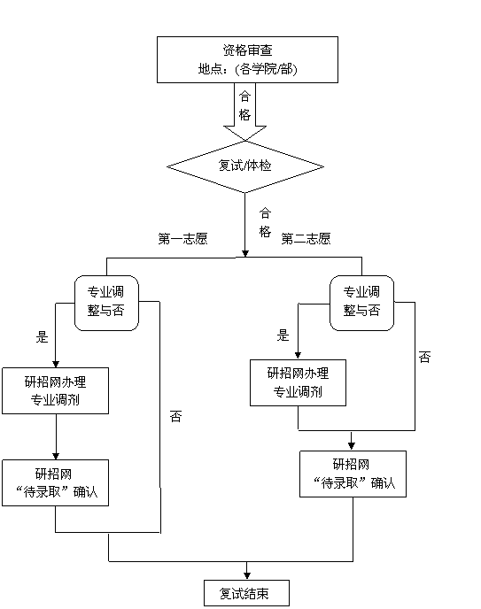1、考生到所在学院(部)报到、资格审查并按学院(部)要求参加复试。