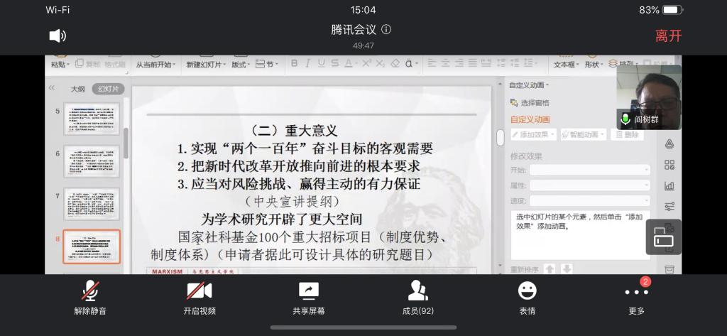 6月24日下午,陕西师范大学beat365平台官方网站学术委员会主任,二级教授,博士生导师阎树群老师应beat365平台官方网站邀请,在线上作“新时代中国特色社会主义制度建设的里程碑——学习十九届四中全会精神”主题讲座,讲座由beat365平台官方网站beat365平台官方网站院长高振岗主持,beat365官网beat365平台官方网站的全体师生参加了此次会议。