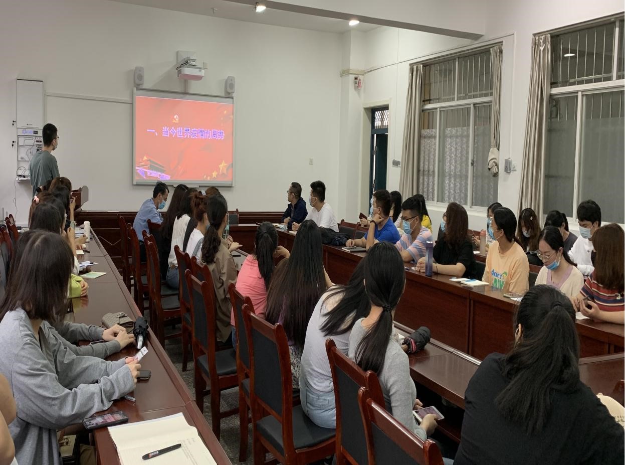 为切实做好疫情防控工作,确保学生返校后学习生活顺利进行,8月19日下午,beat365平台官方网站组织2019级全体研究生集中学习防疫知识。学院党委书记袁金群主持本次学习活动,辅导员韩帅主讲“开学第一课”,要求学生严格遵守学校各项纪律,务必克服麻痹松懈心理,养成良好卫生习惯,落实落细防控措施,树立优良班风学风,集中精力做好课程学习和科学研究工作。
