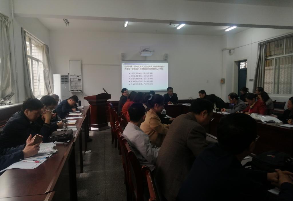 11月4日下午,beat365平台官方网站在临潼1号楼205学院会议室召开全体教职工大会。院长高振岗、党委书记袁金群、副院长张铭钟以及全体思政课教师、行政管理人员、部分研究生参加了会议。