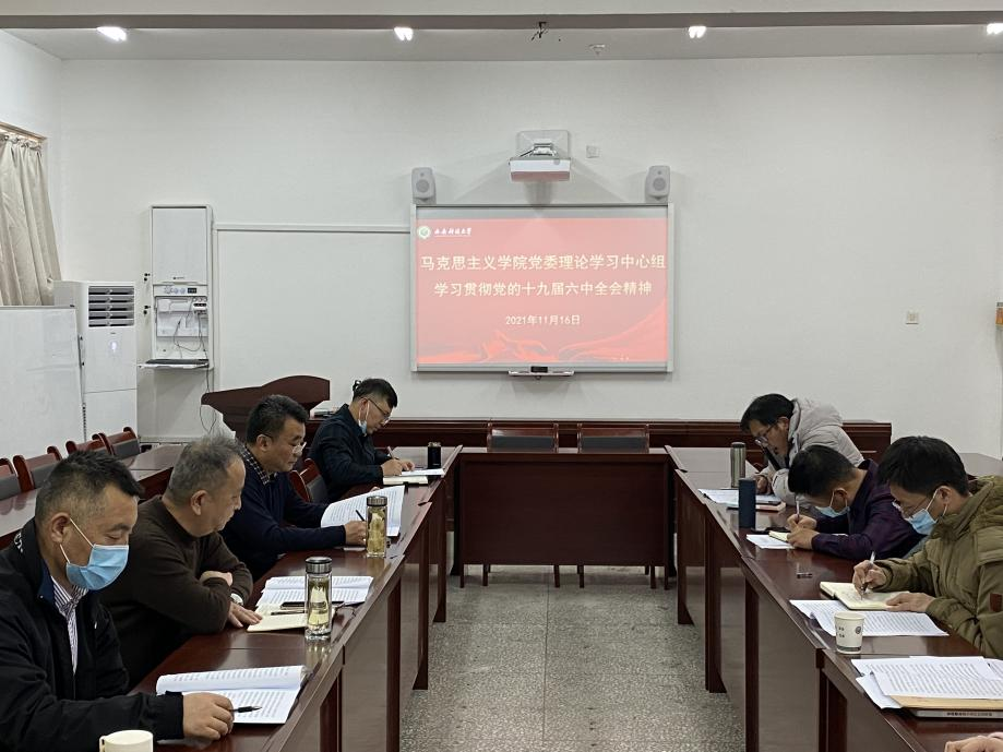 20211112日上午学院师生集体观看十九届六中全会新闻发布会。会后,学院安排各教研室尽快召开集体备课会并制定“三进”方案。1116日下午,学院党委书记卫晓君主持专题学习会议,学校思想政治理论课建设工作领导小组副组长、校党委副书记樊建武与学院班子成员和各教研室主任参加学院组织的学习贯彻十九届六中全会精神专题会议,各教研室主任就全会精神融入课程进行了发言。樊书记强调要自觉把思想和行动统一到全会精神上来,并就“三进”、专题学习、研究阐释、宣讲等进行了动员部署,学院副院长张铭钟做了具体安排。学院党委书记卫晓君要求各教研室要充分发挥每一位教师的主动性和积极性,坚持立德树人,开展集体备课、集体研讨,共同研究“三进”方案,努力提高教师的教学能力和水平,保证“三进”工作的质量和效果。