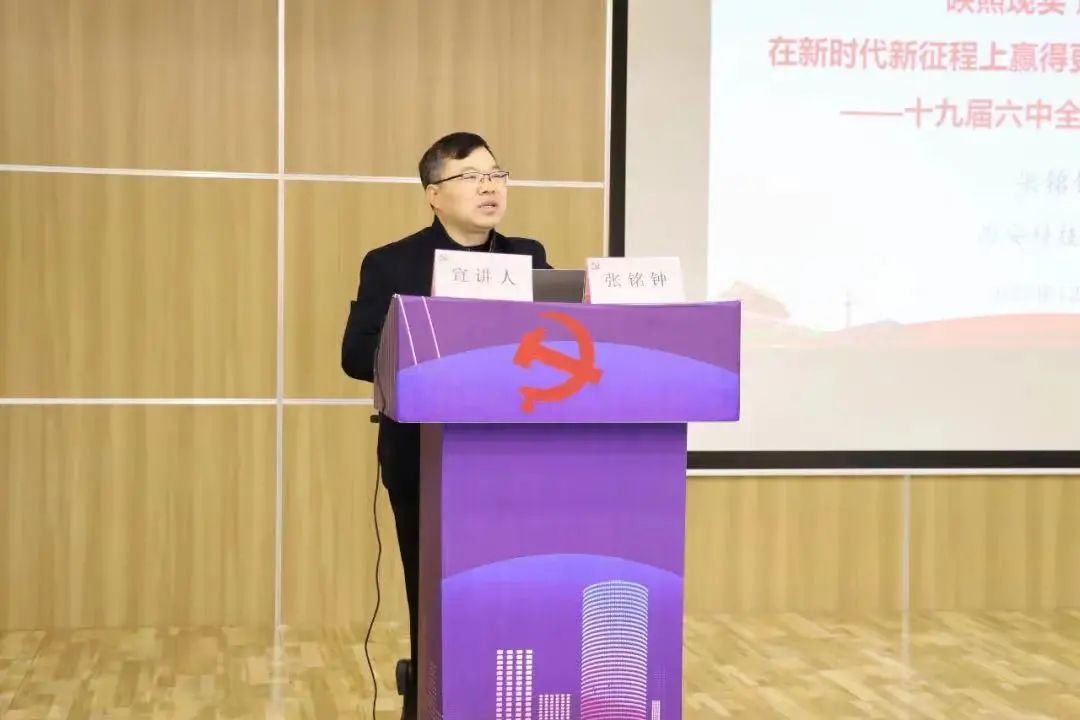 为深入学习贯彻党的十九届六中全会精神,2021年12月3日,beat365平台官方网站张铭钟教授应邀前往榆林高新区科技创新局进行十九届六中全会精神专题宣讲报告会。园区新型研发机构、高新技术企业、科技型中小企业负责人及孵化器党员参加会议。