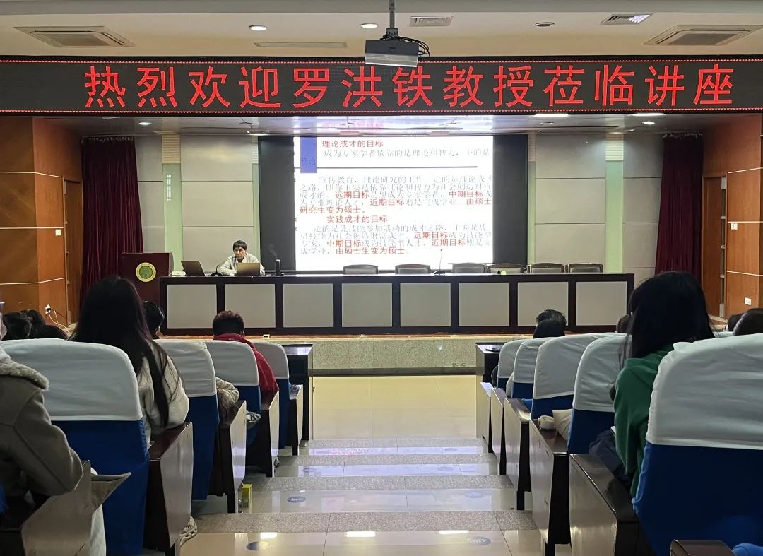 罗洪铁教授围绕新时代研究生学术成才之路,结合当前学术成才面临的现实问题,进行了深入的讲解。他强调要学会运用科学的方法,牢记“目标、勤奋、意志、方法”八字策略,并指出对八字策略的认识与实践将是一个人成功成才的关键。他表示,目标的正确与否及目标层次的高低,决定活动过程及其结果的价值,研究生要合理规划自己的远期、中期、近期目标;勤奋是实现目标的重要保证,意志是读研阶段和人生发展必不可少的精神因素。罗洪铁教授结合个人成长经历,用实践讲述了生动一课。他号召青年学子要有雄心壮志,要努力打好基础,研究生阶段一定要多读、多思、多写,不断提高理论水平与科研能力。