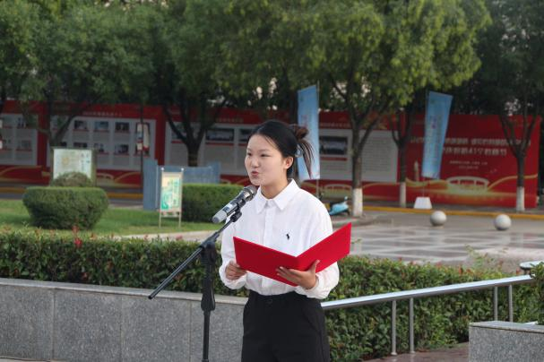 9月8日清晨,临潼校区骊山校园中心广场举行升国旗仪式,beat365平台官方网站红言宣讲团讲师李锦燕作国旗下主题宣讲。