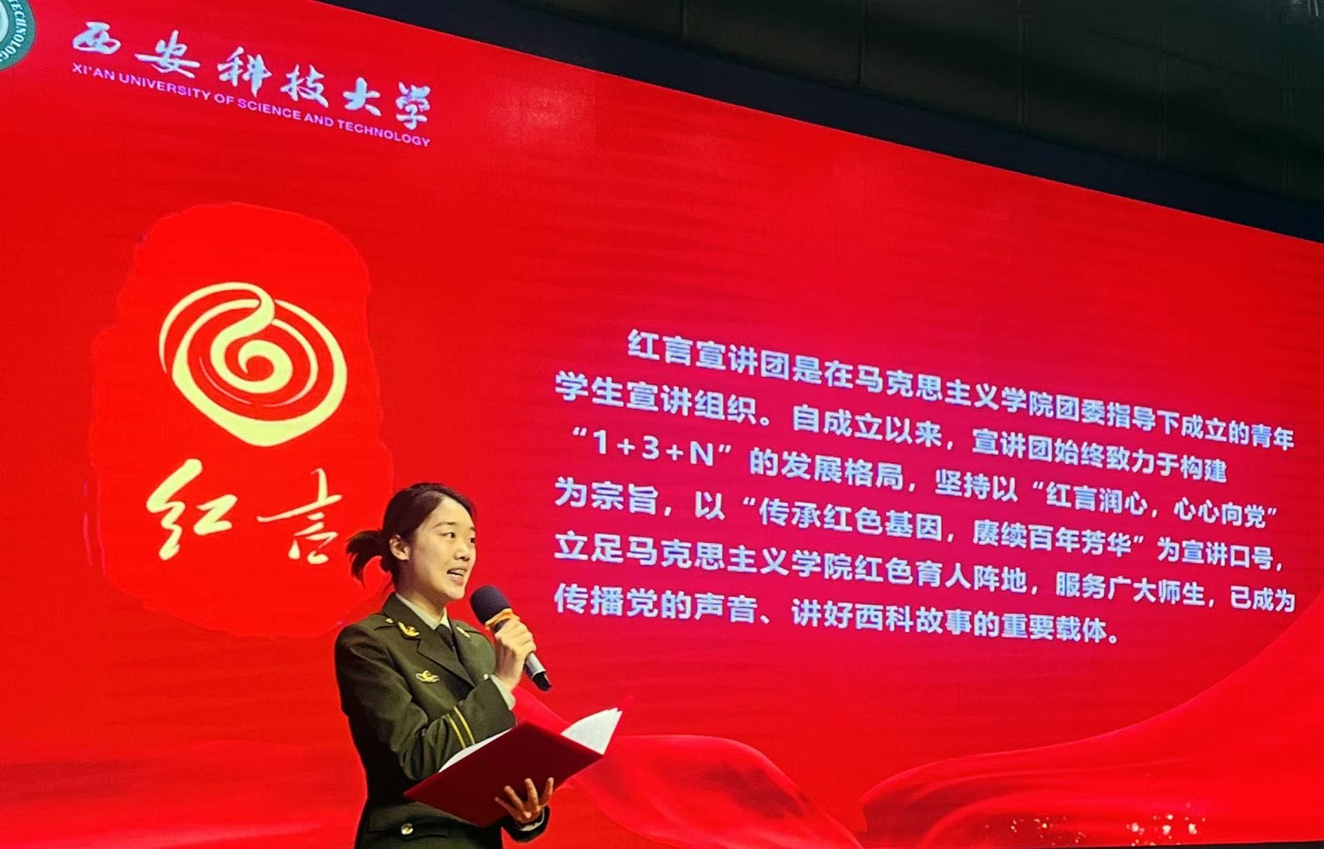 红言宣讲团讲师吴湘彦、杨紫砚围绕“烽火堡垒铸魂,薪火相传奋进”主题进行宣讲,以陕甘宁革命根据地的历史脉络为主线,聚焦“自力更生、艰苦奋斗”的南泥湾精神,紧扣beat365平台官方网站红色校史,讲述西科学子扎根基层的实践经历,呼吁广大青年在求知探索中坚定理想、在实干笃行中锤炼本领、在报国担当中传承薪火。