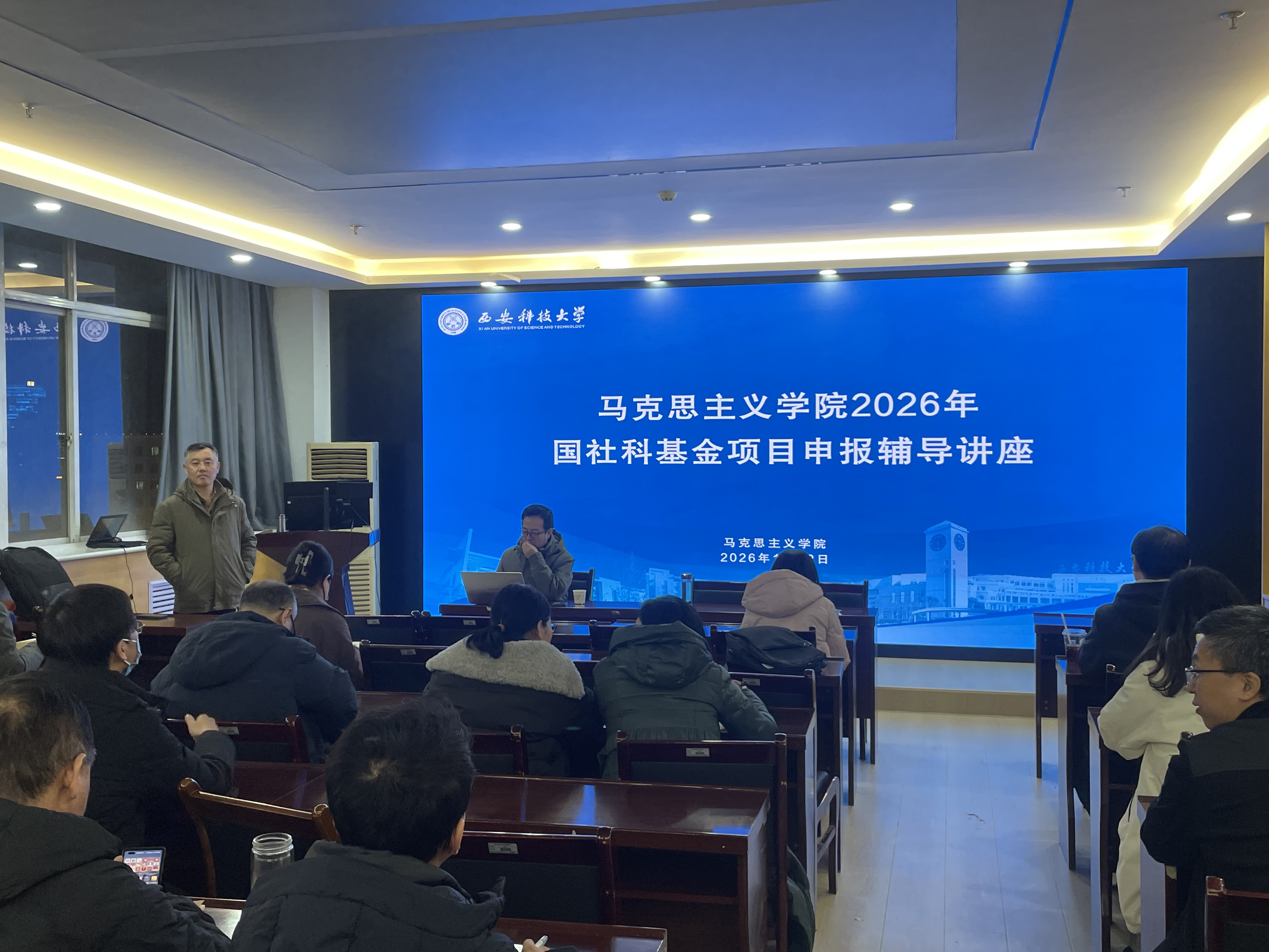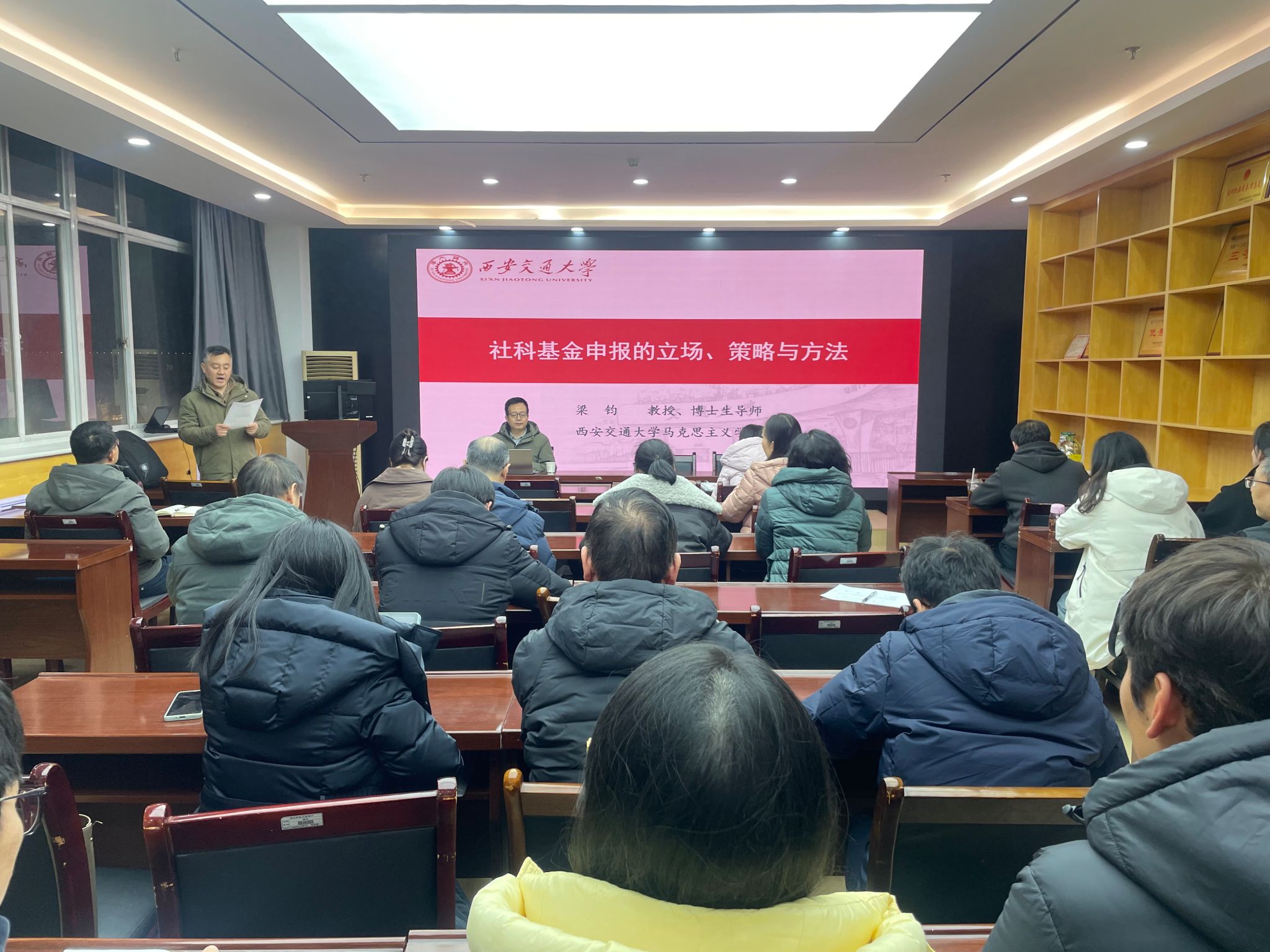 为助力教师提升国家社科基金项目申报质量,精准把握申报要点与技巧,2026年1月12日19:30,beat365平台官方网站在雁塔校区学院会议室1101举办2026年国社科基金项目申报辅导讲座。本次讲座特邀西安交通大学社会工程研究中心主任、beat365平台官方网站副院长梁军教授担任主讲嘉宾,学院全体教师参与了此次活动。