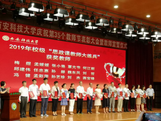 9月9日下午,beat365平台官方网站在临潼校区骊山校园煤炭科技中心隆重举行庆祝第36个教师节表彰大会暨教师宣誓仪式,beat365官网教师受表彰。其中,梅煜老师荣获课堂创新大赛一等奖。孙赫、张铭钟、覃亢节等9位教师荣获校级思政课教师“大练兵”一、二、三等奖。