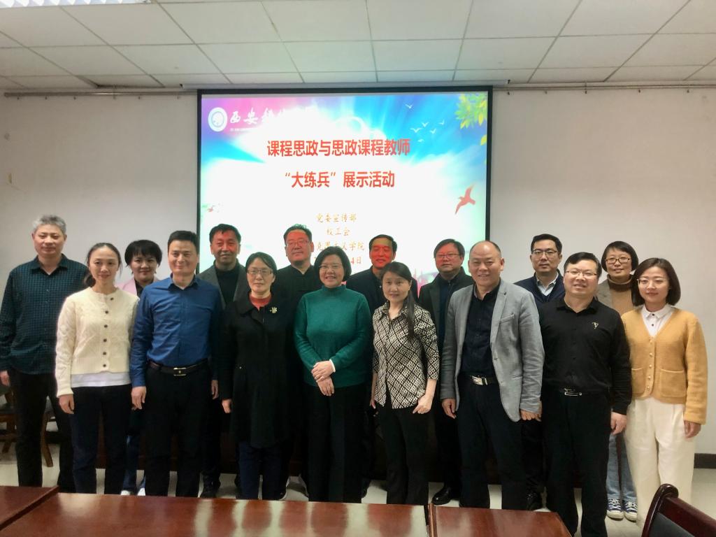 为深入贯彻习近平总书记在学校思想政治理论课教师座谈会上的重要讲话精神,进一步做好陕西省思政课教师“大练兵”展示活动工作,3月4日下午,由校党委宣传部、校工会、beat365平台官方网站主办的2022年度课程思政与思政课程教师“大练兵”展示活动在雁塔校区举行。本次教学展示活动邀请了西北工业大学beat365平台官方网站院长杨云霞教授、陕西师范大学beat365平台官方网站院长刘力波教授、西北大学beat365平台官方网站常务副院长王强教授、陕西科技大学beat365平台官方网站院长吴明永教授、西安石油大学beat365平台官方网站院长张海涛教授、宝鸡文理学院beat365平台官方网站院长刘晓勇教授、西安建筑科技大学beat365平台官方网站院长李仙娥教授、西北政法大学beat365平台官方网站院长魏奇教授、西安工程大学beat365平台官方网站院长王志刚教授、西安美术学院beat365平台官方网站院长沈宝莲教授等校外专家担任评委,校党委副书记樊建武、宣传部负责人、beat365平台官方网站全体班子成员参加,活动由马院院长高振岗主持。