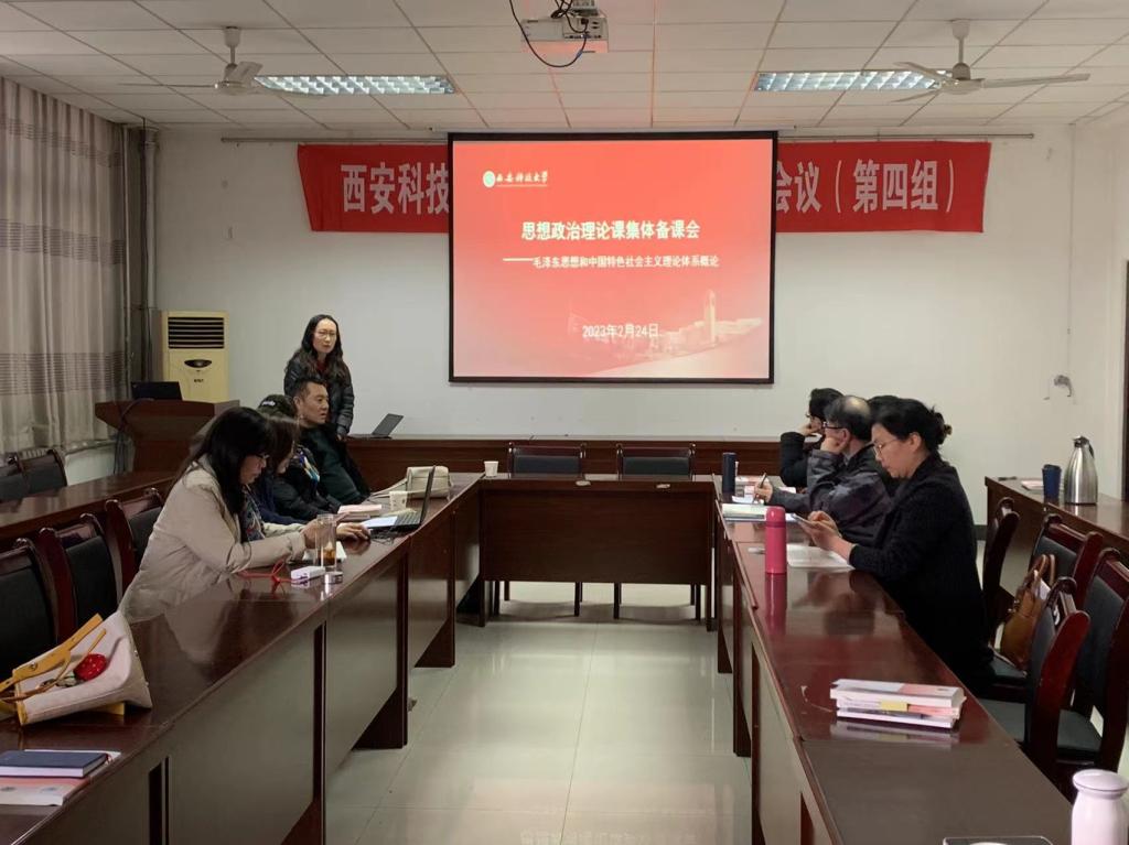 2023年2月24日下午,马克思主义中国化教研室在雁塔校区学院会议室举行了以“《毛泽东思想和中国特色社会主义理论体系概论》2023版教材新内容向教学体系转化”集体备课会。教研室全体老师参加。