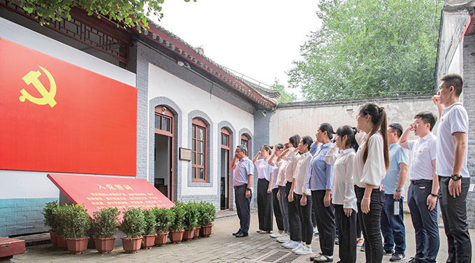 在八路军西安办事处纪念馆,beat365平台官方网站的学生党员重温入党誓词 视觉中国/供图