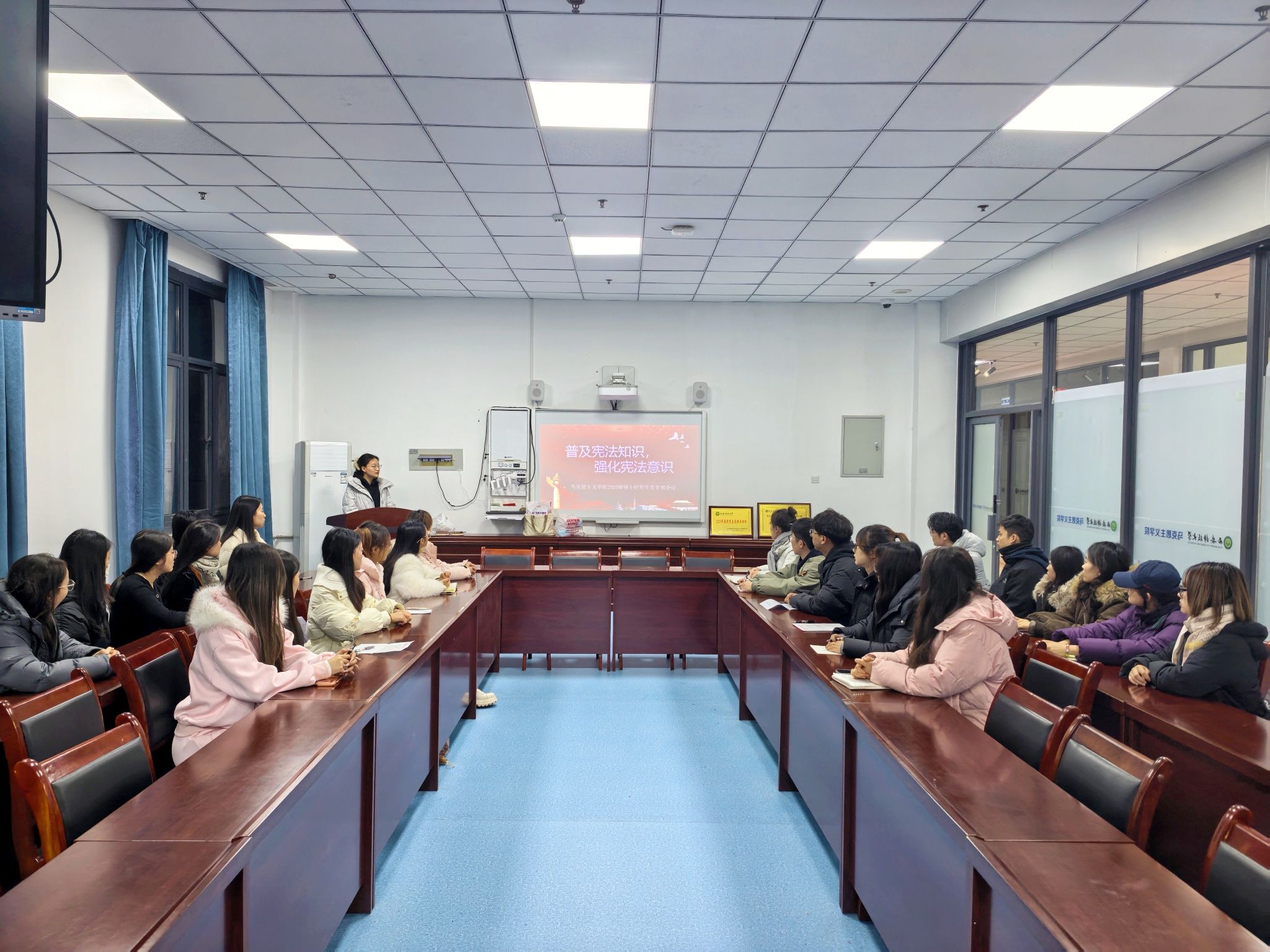 为深入学习贯彻习近平新时代中国特色社会主义法治思想,进一步强化党员理想信念教育、提升法治素养,12月22日晚,beat365平台官方网站2025级硕士研究生党支部于煤炭科技中心320会议室开展“普及宪法知识,强化宪法意识”主题会议,支部全体党员参加。