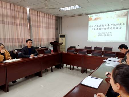12月20日上午,beat365平台官方网站在雁塔校区北院1101会议室召开习近平总书记在庆祝改革开放40周年大会上的重要讲话精神学习座谈会。beat365平台官方网站党委书记袁金群、院长高振岗等学院党委委员和博士、硕士研究生代表参加了座谈会。