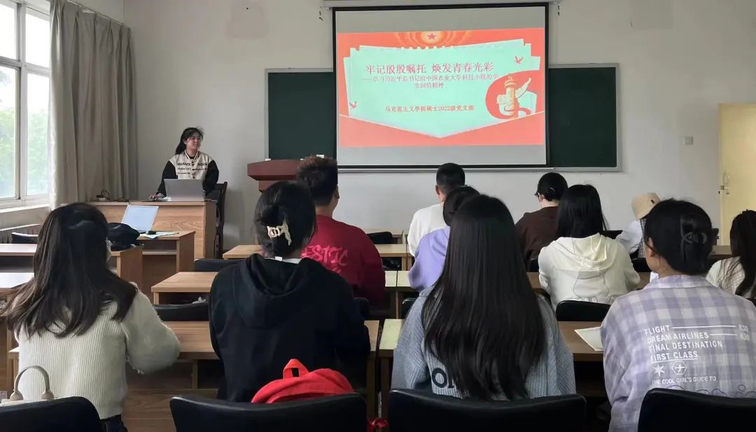 在五四青年节到来之际,习近平总书记给中国农业大学科技小院的同学们回信,向全国广大青年致以节日祝贺,对新时代中国青年寄予殷切期望、提出成长要求,青年师生、团学骨干学习贯彻习近平总书记回信精神,极大鼓舞和振奋了全国广大青年和青年工作者。5月5日下午,beat365平台官方网站学生党员、研究生干部在1教313开展此次精神的学习会议,会议主题为:牢记殷殷嘱托,焕发青春光彩——学习习近平总书记给中国农业大学科技小院的学生回信精神。