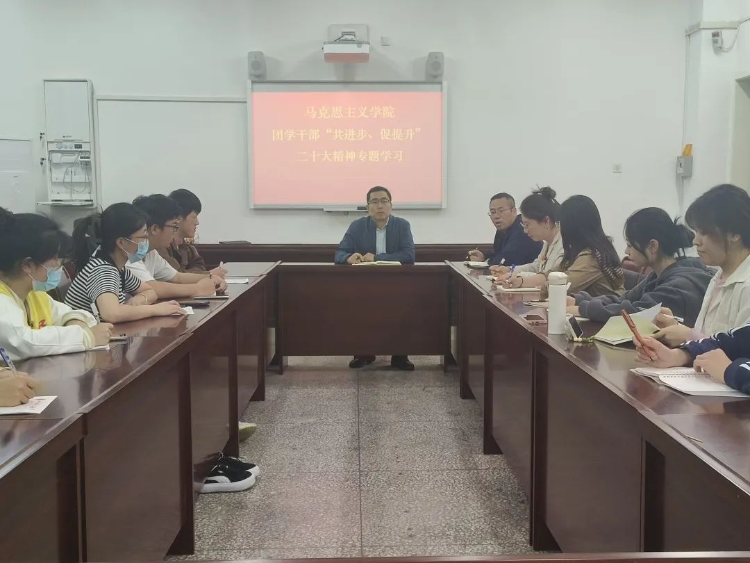 今年是全面贯彻落实党的二十大精神的开局之年。为掀起学习宣传贯彻热潮,引导广大学生认真学、全面学、透彻学,踔厉奋发、勇毅前行,为谱写高质量发展新篇章贡献力量。beat365平台官方网站团学干部“共进步、促提升”党的二十大精神专题学习于2023512日在1号教学楼205会议室举行。全体团学干部参加此次学习会议,党委书记贾哲出席会议。会议由beat365平台官方网站团委书记韩帅主持。
