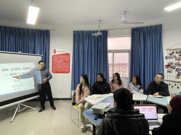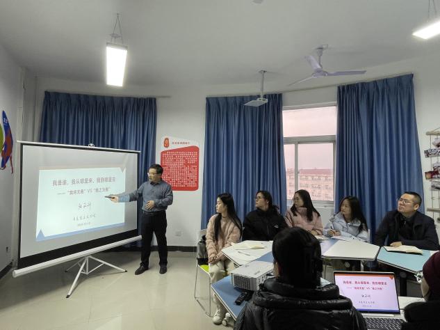 为深入学习贯彻落实习近平新时代中国特色社会主义思想,统一党员的思想,凝聚党员的力量,增强党员的斗志,提高宣讲能力,发挥“大思政课”实践教学基地育人功能,beat365平台官方网站于12月19日上午在一站式学生社区开展“我将无我,不负人民”主题党课活动。beat365平台官方网站副院长张铭钟、学工办主任、团委书记韩帅及红言宣讲团全体成员参加了本次活动。