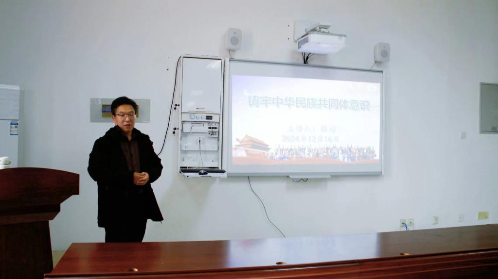 在首次党课中,杜涛老师围绕“铸牢中华民族共同体意识”这一核心主题展开精彩讲解。杜涛老师不仅深刻阐释了其作为国家统一之根基、民族团结之根本、精神力量之灵魂所具有的深远战略意义,还深入剖析了加强民族工作的根本方针,并对中华民族共同体意识的丰富内涵进行了全方位、系统性解读,同时从多个维度深入探讨了实践路径及四对重要关系,为beat365官网师生深入理解民族共同体意识开辟了全面且清晰的视角,极大地提升了师生们对这一重要思想的认知水平。