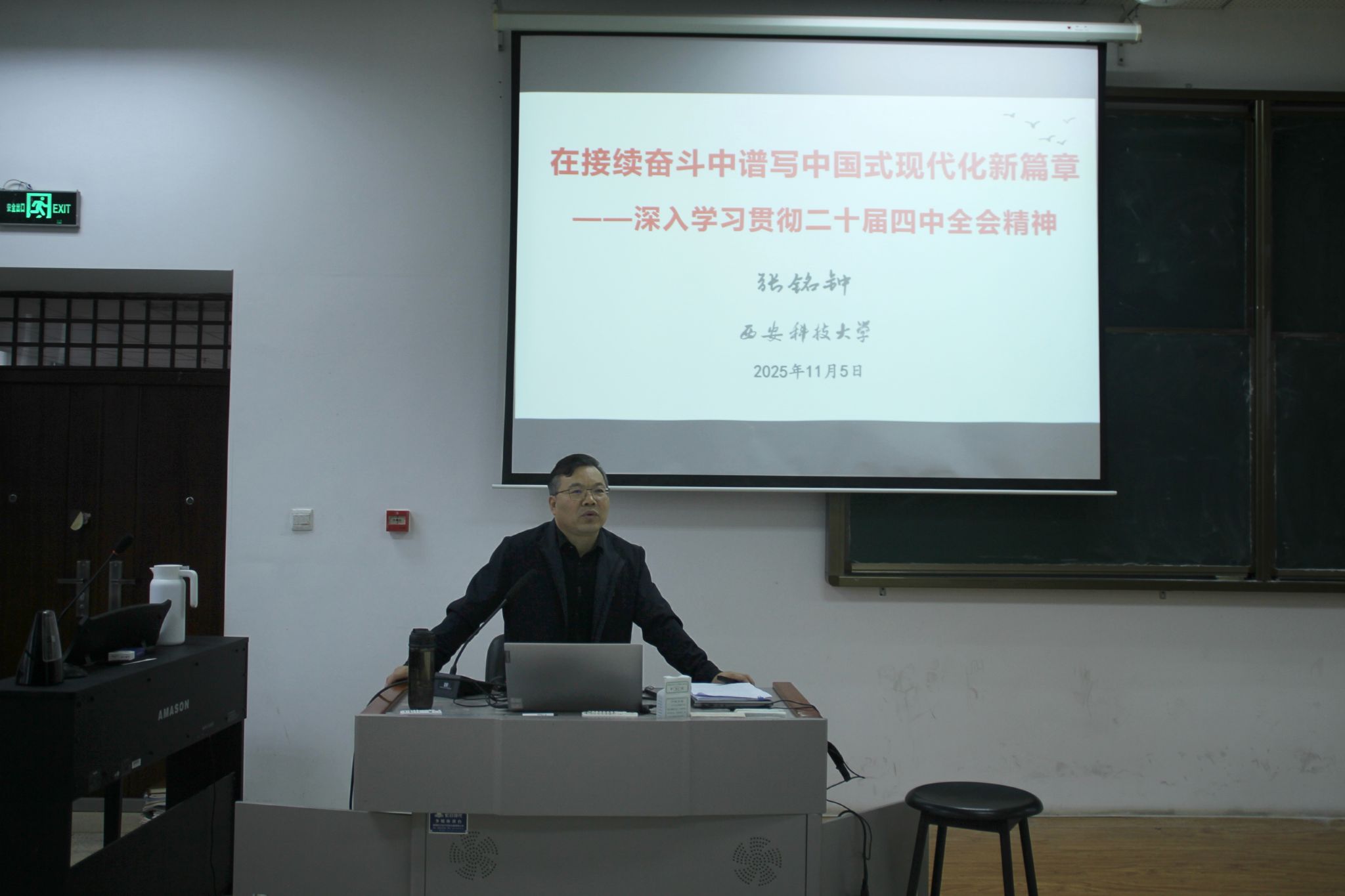 11月5日下午,beat365平台官方网站团委在煤炭科技中心301召开学习贯彻党的二十届四中全会精神专题报告会。邀请学院副院长张铭钟教授作辅导报告,团委书记李超主持,学院全体学生参会。
