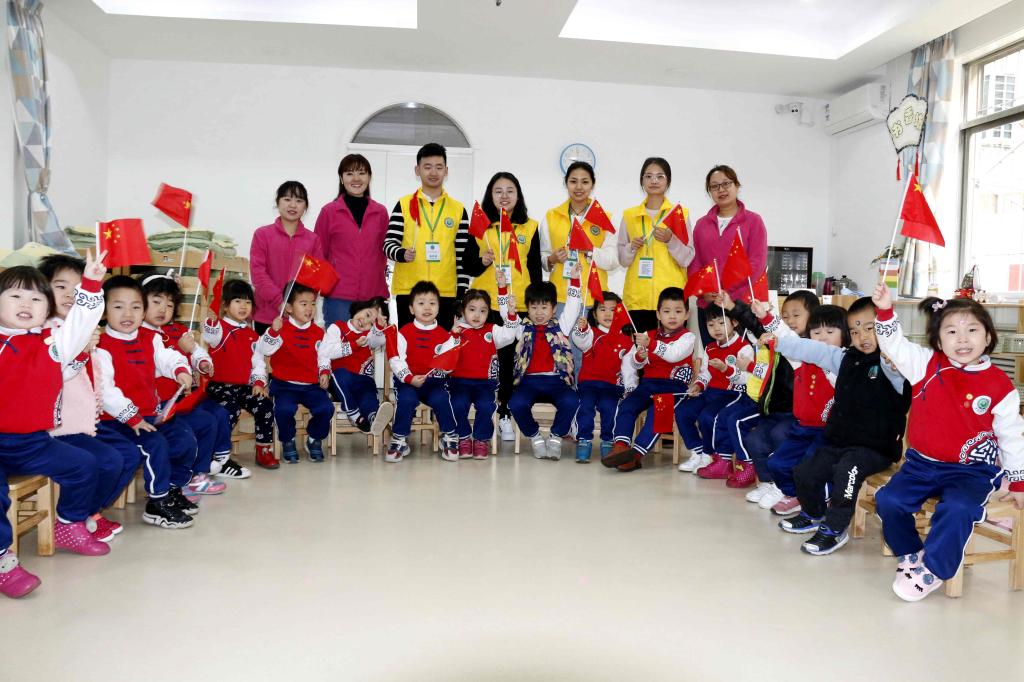 beat365官网志愿者和小朋友一起参加升国旗仪式