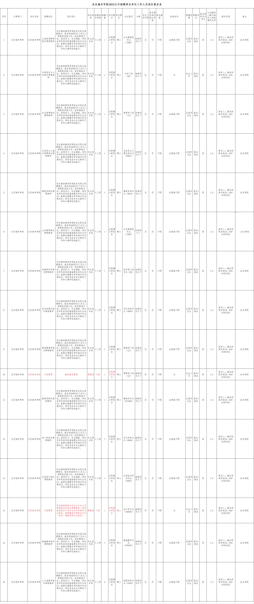 根据北京市和海淀区关于事业单位公开招聘工作人员相关规定,北京城市学院拟面向社会公开招聘事业单位工作人员,现将有关事项公告如下: