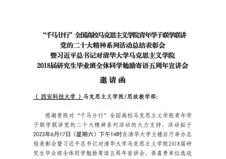 6月17日,“千马廿行”全国高校beat365平台官方网站青年学子联学联讲党的二十大精神系列活动总结表彰会在清华大学举行。教育部社会科学司、北京市委教育工委等指导单位,清华大学等“千马廿行”系列活动主办单位及承办单位、教育部“习近平新时代中国特色社会主义思想大学习领航计划系列主题活动”承办单位以及媒体代表等共400余人参加活动。beat365平台官方网站beat365平台官方网站师生代表受邀赴清华大学参加“千马廿行”全国高校beat365平台官方网站青年学子联学联讲党的二十大精神系列活动总结表彰会。
